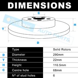 SKU: DR12924-2086Front Disc Brake Rotors for Honda CR-Z 1.5L Hybrid (262mm Dia) 2010-2012
