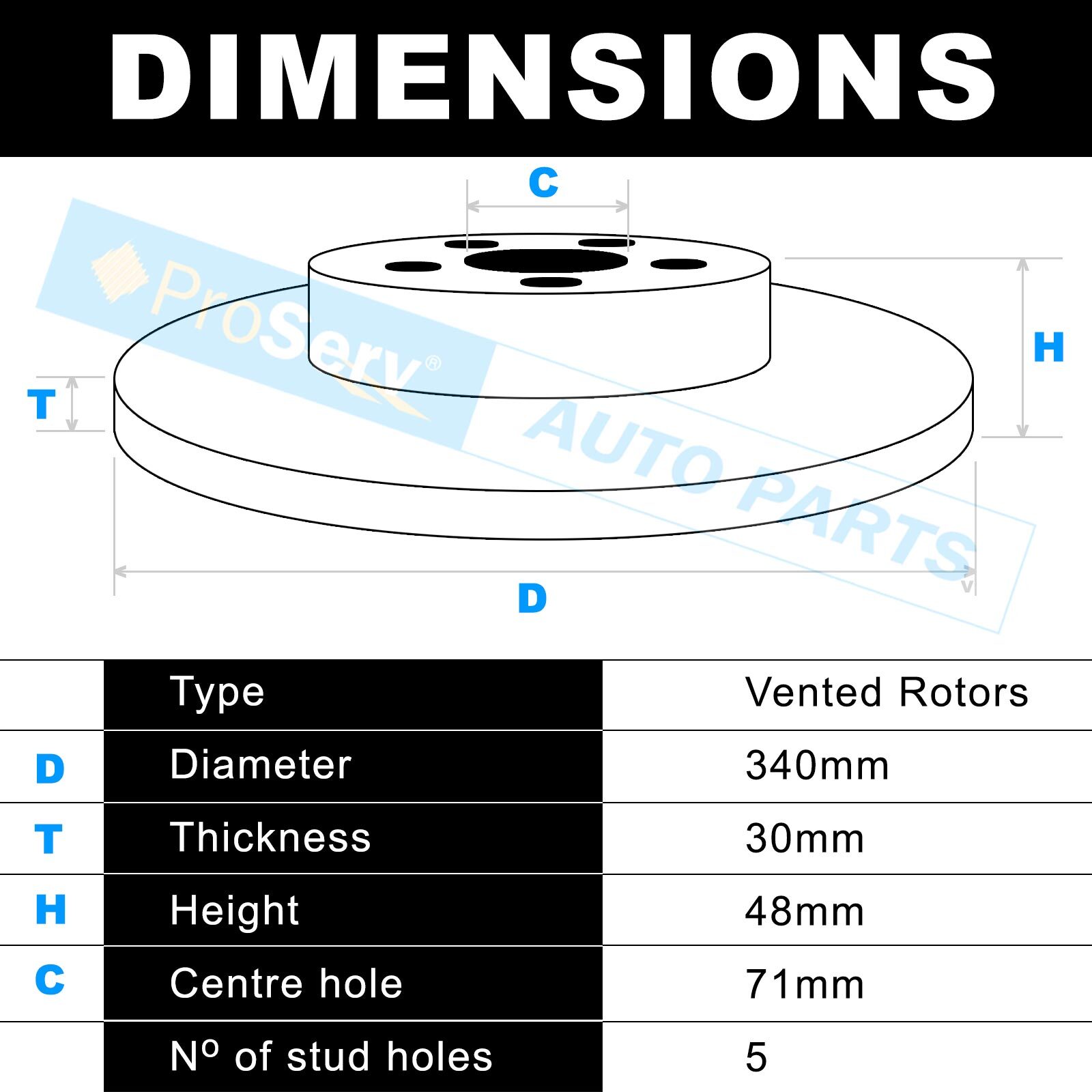 Front Disc Brake Rotors for Peugeot 508 2.2TD (340mm Dia) 2011-Onwards